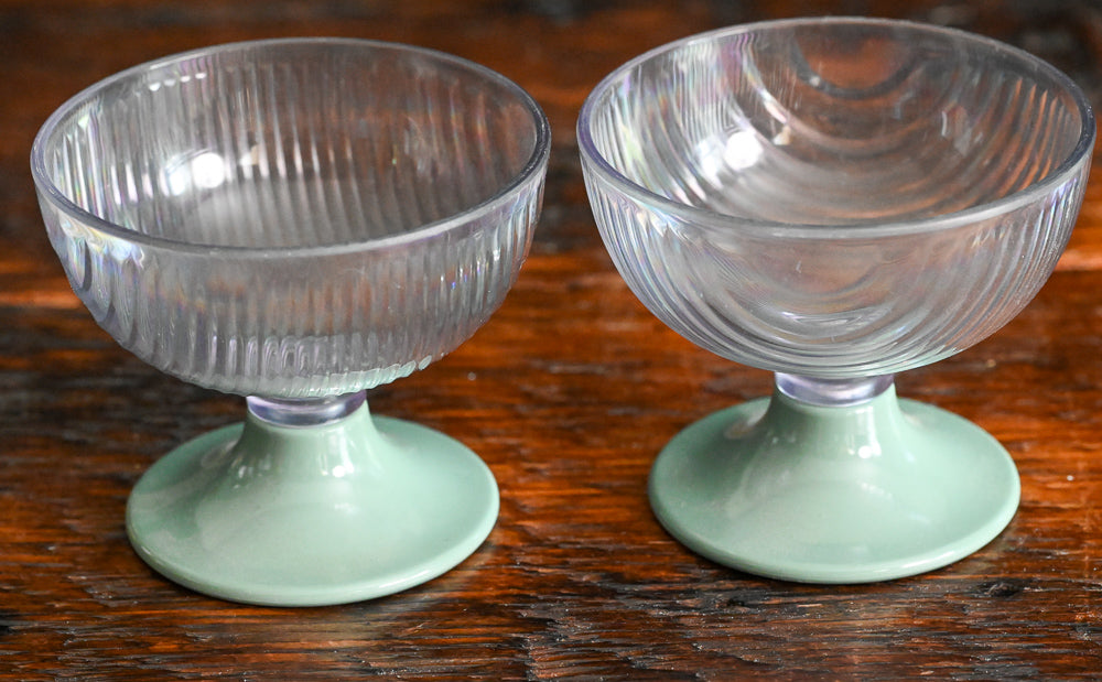 Elevate your vintage glassware collection with these Sage Green Plastic Sherbet Glasses. Crafted in a classic retro style, their soft green hue adds a subtle touch of nostalgia to any table setting. Durable yet lightweight, these glasses are perfect for serving sherbet, desserts, or cocktails with a vintage flair. Ideal for collectors and enthusiasts seeking authentic mid-century charm combined with practical everyday use.